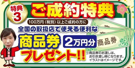 ☆ご成約特典(税別100万円以上)☆