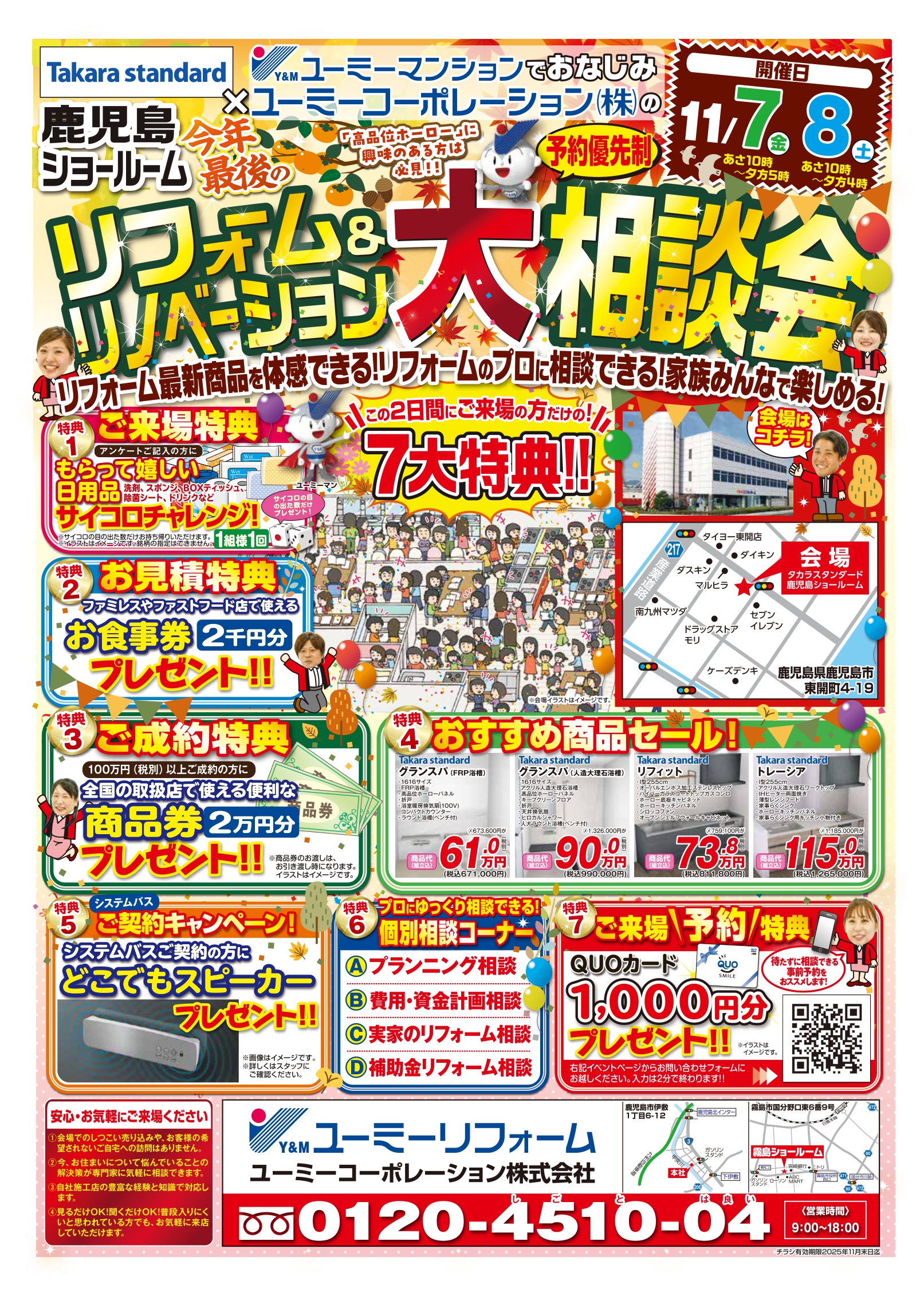 11/7・8 タカラスタンダード鹿児島ショールームイベント「今年最後のリフォーム&リノベーション大相談会」開催!