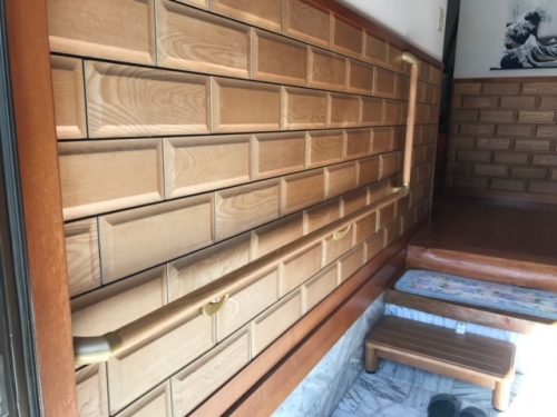 玄関に縦と横にL字の手すりを取り付けました。