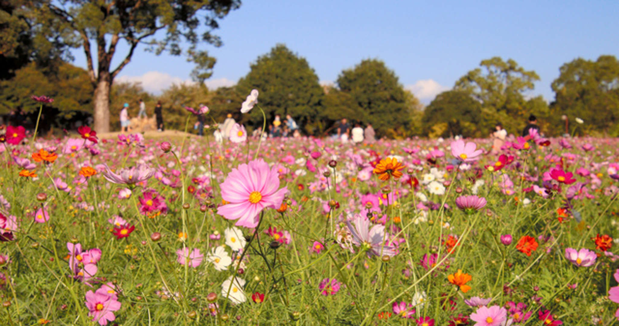 約8千平方メートルの花壇「四季の花園」には11種類、約23万本のコスモスが植えられ、