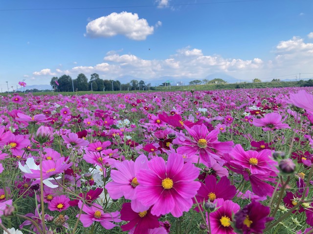 溝辺の現場に行く途中にある十三塚史跡公園ではコスモスが満開でした(^^)