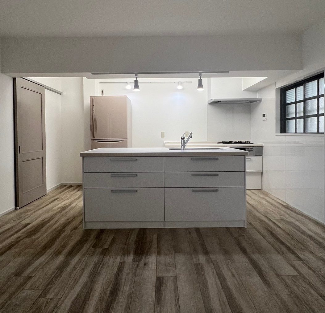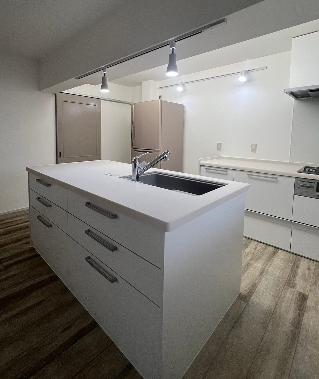 昨年工事をさせていただいたお客様で、クリナップのラクエラシリーズの2列型キッチンを採用いただきました。壁付けのキッチンから、シンクを対面側にしてアイランド仕様にし、コンロは背面に配置しました。