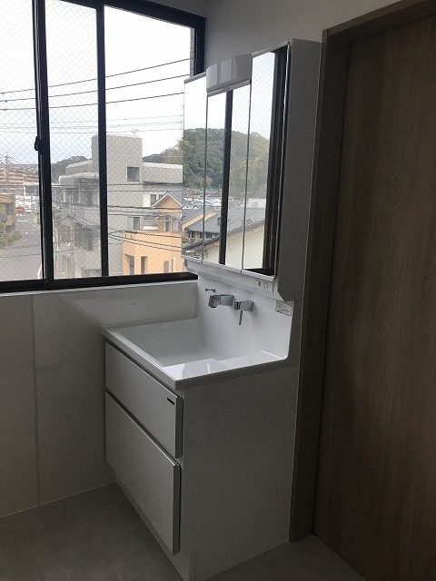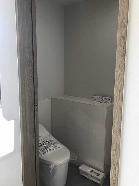 ゆったりした空間のトイレ、洗面台、朝の身支度スペースに