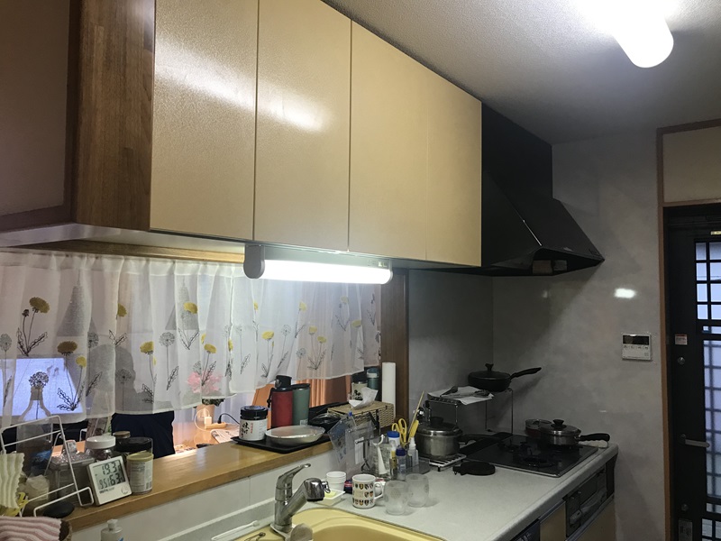お気に入りのカウンター、吊戸はそのまま活用。キッチン下台とレンジフード交換の