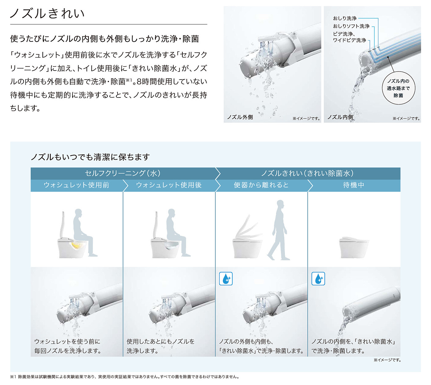 ウォシュレットには「セルフクリーニング機能」がついており、ウォシュレット使用前後に自動でノズルの洗浄をしてくれます!