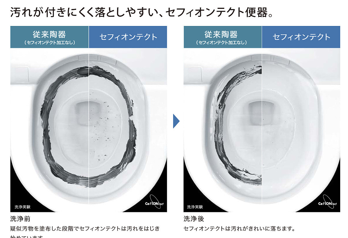 長年陶器製品を作り続けてきたTOTOのトイレの特徴の1つが「セフィオンテクト」です。