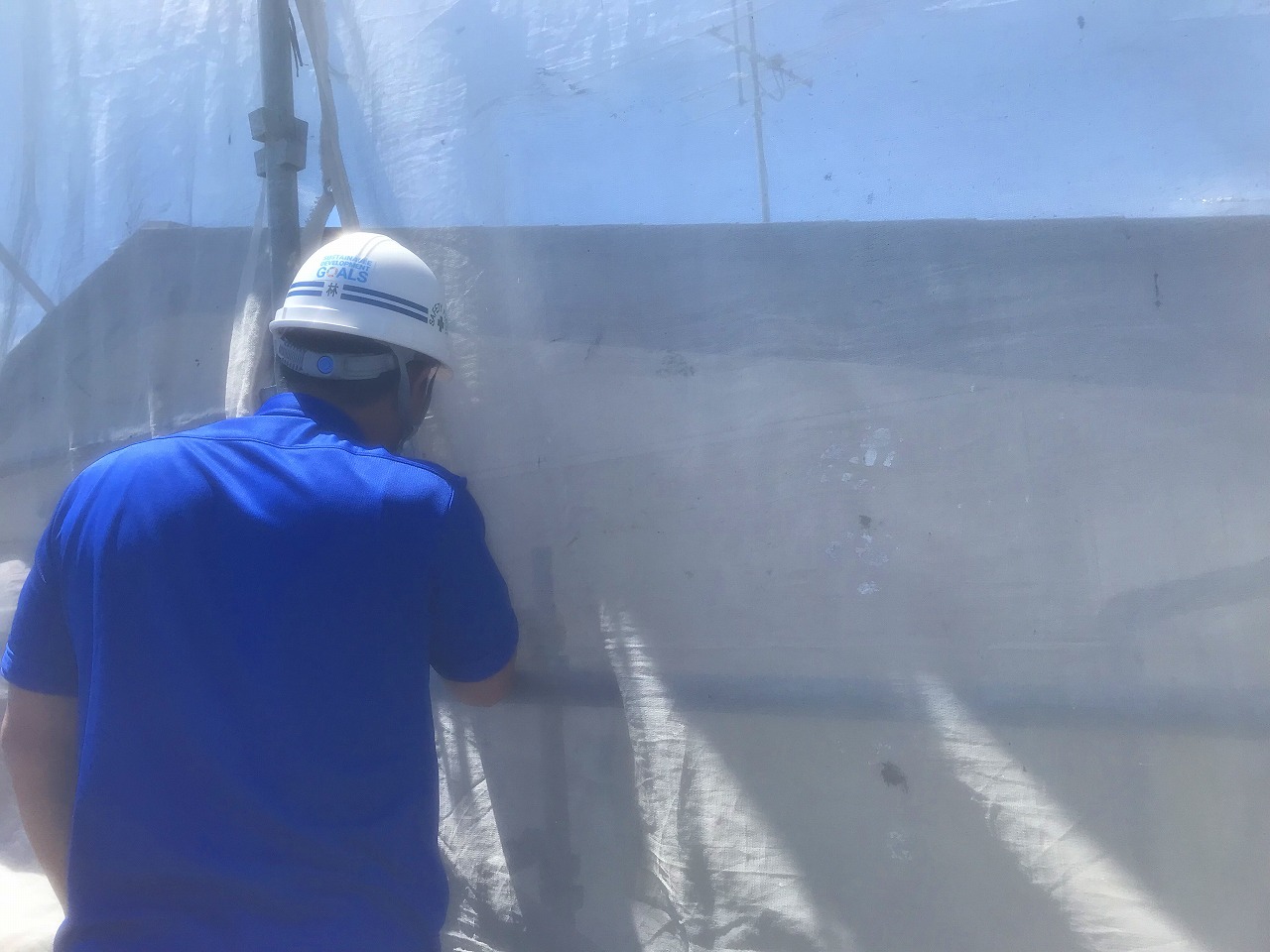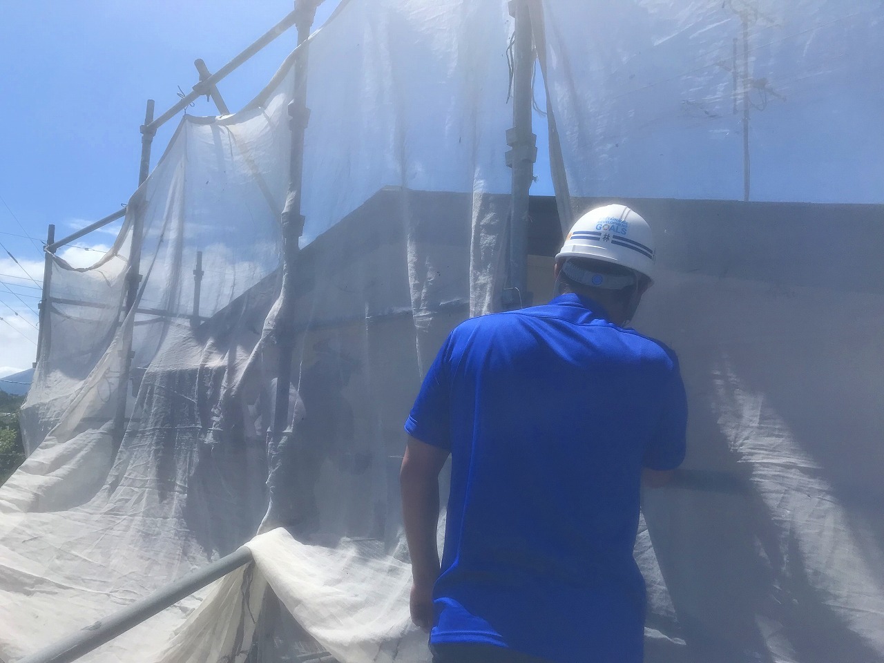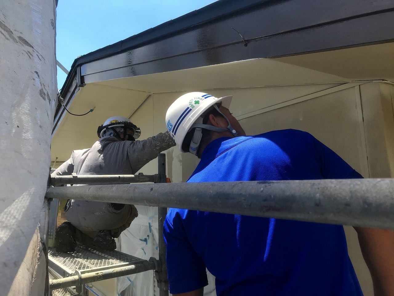 5月入社の期待の新入社員の吉田さんも塗装について勉強するべく、高所恐怖症にも関わらず