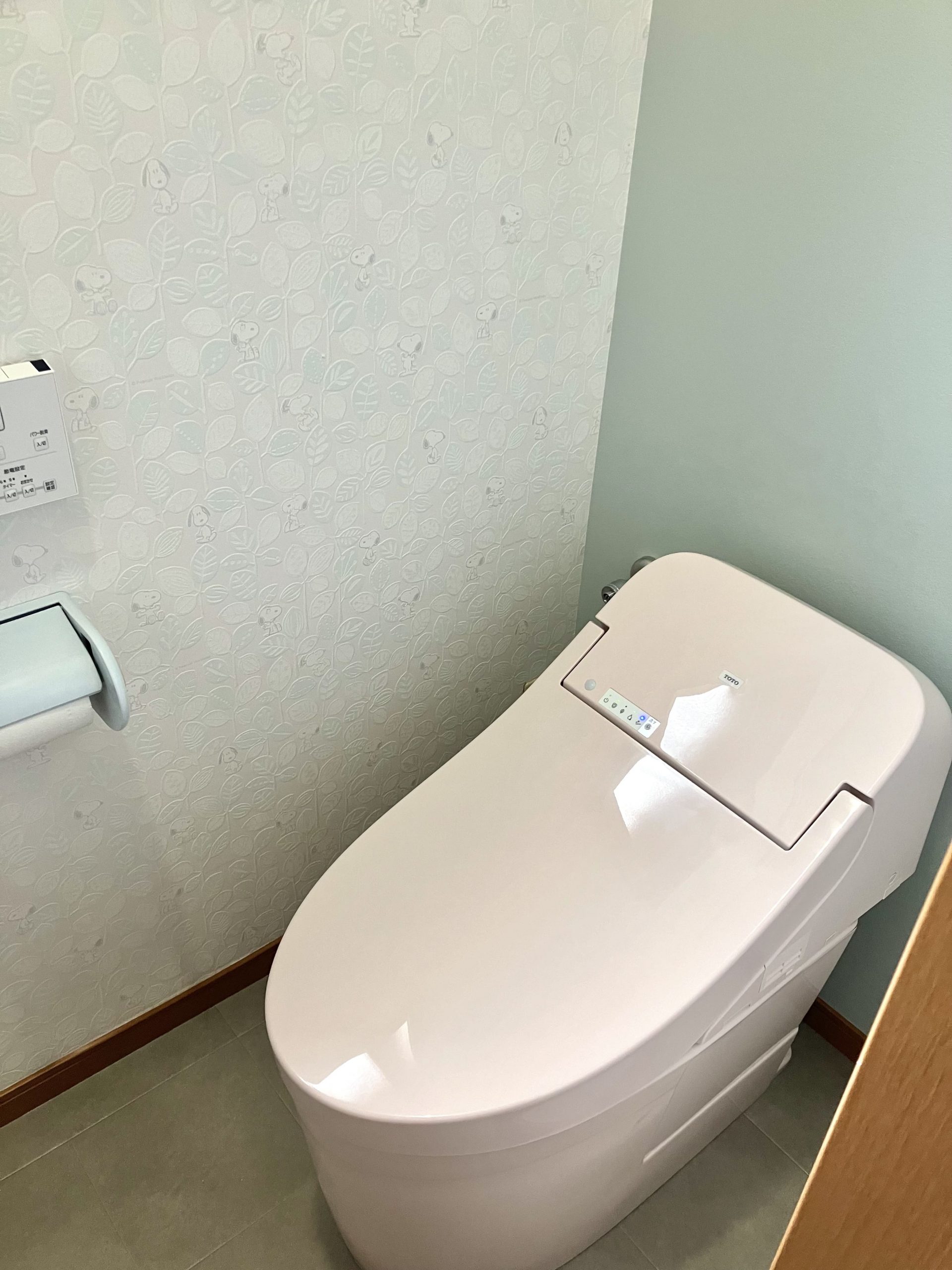キャラクター×凹凸×アクセントクロスのかわいい内装が、ピンクカラーのトイレとぴったりです🥰