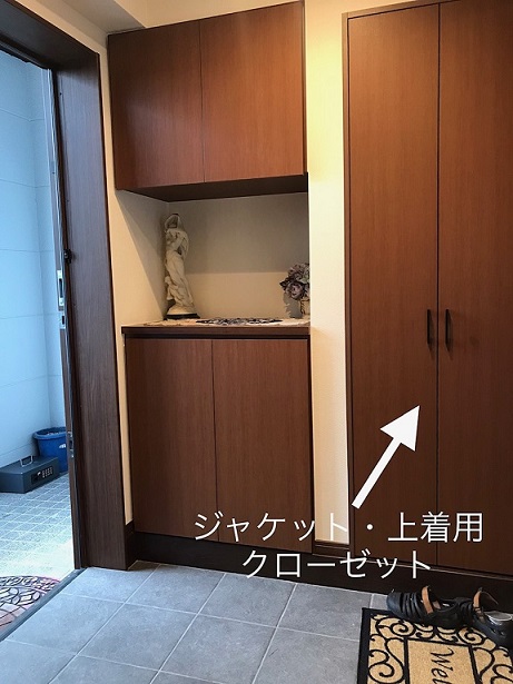 ⇩⇩💡こちらは、室内・玄関リフォームをした際に、靴箱収納の隣に、ジャケットや上着などの収納場所を確保しました!外出する際、また帰ってきた際に上着を玄関でさっと脱いで収納するのに便利です!特に秋や春の花粉の時期は、花粉を室内に持ち込みたくないというお声もあると思います。